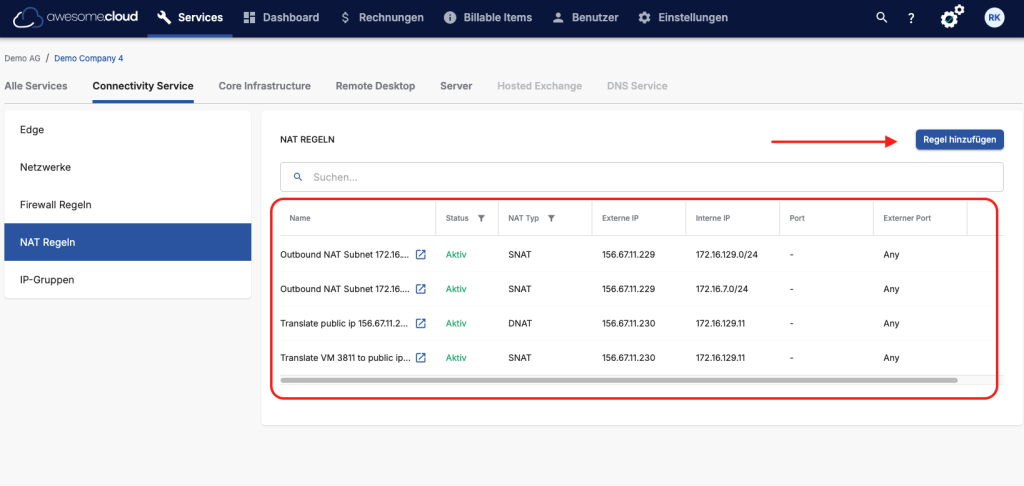 Damit könnt ihr NAT Regeln selber erstellen und anpassen. Zugriffe von und zu Euren Kundensystemen lassen sich so noch einfacher steuern.