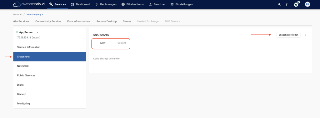 Der neue Snapshot-Menüpunkt bietet eine zentrale Ansicht aller Snapshots eines Servers. Ihr seht auf einen Blick:
